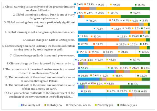 . In the research material collected, basic descriptive statistics were calculated and the structure of assessments of diagnostic theses was analyzed [51]. Due to the selection of the sample, the research is the basis for further research and should not be generalized to the entire population of southeastern Poland.