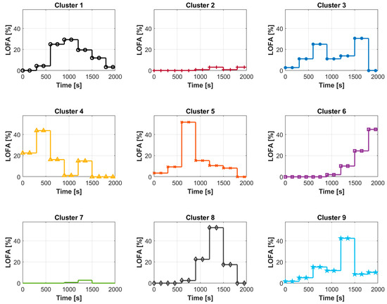 - Classical techniques available for the post-processing of the clusters produced by the FCM-based SC method [44,45,46] are originally tailored to identify both the LOFA occurrence times and the components failure modes;