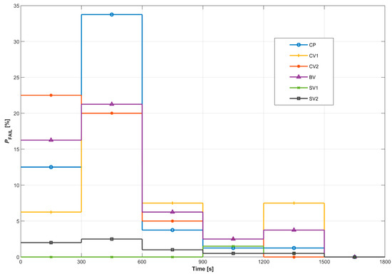 The thresholds for , and may be exceeded due to failures of the mechanical components (CP, CV1, CV2, BV, SV1 and SV2) that are characterized by different magnitudes and timings [28]. In particular [48]: