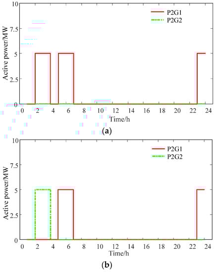In order to discuss the impact of P2G facilities on flexible and economical dispatching of the power system, the part on demand response is deleted here, and the following two schemes are set for comparison and analysis: