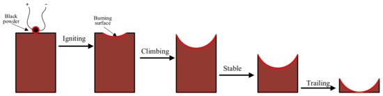 where a and n are the burning rate coefficient and the pressure exponent, respectively; and are the density and burning area of the solid propellant, respectively; and is the pressure in the gas generator. When the propellant is made, these parameters of a, n, , and have also been determined.