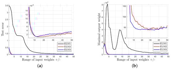 - The standard network (ELM1) generates a higher test error than modified networks (ELM2 and ELM3), in spite of the range of the input weights.