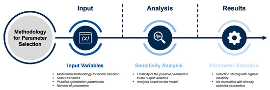 Based on these input variables, a sensitivity analysis is performed for each possible optimization parameter using the model resulting from the model selection approach. Here, the elasticities of the output quantities relevant to the optimization are examined so that the possible optimization parameters can be sorted based on their elasticity. This identifies those parameters that have the greatest possible influence on the optimization problem, minimizing the global optimum in particular, since this correlates negatively with the elasticity of the optimization parameters. From the sorting of the optimization parameters, starting with the highest elasticity, the given number of parameters can be selected. For each new optimization parameter to be added, the correlation with already selected parameters must be checked, since the individual optimization variables must be independent of each other and must not influence each other. Otherwise, contradictory solutions may result. The optimization parameters resulting from the parameter selection procedure serve as input variables of an optimization environment. Here, a problem-specific, experience-based selection of upper and lower bounds of the parameters is important to reduce the size of the solution space and thus the computational effort. A multi-step optimization environment for the design of an IM using the model and parameter selection procedure presented here is given in [3].