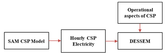 Denholm and Mehos [7] evaluated the impact of a CSP plant with an 8 h TES system on the electricity system in southeastern USA. The authors added the energy generation obtained from CSP plant simulations with the SAM computational program (a program created by the NREL for financial and performance modeling of solar plants) to the input data for REFlex software (a dispatch model that compares the load with the renewable resources and calculates the quantity of energy to be cut back according to the flexibility of the grid.) and concluded that the introduction of CSP generation could reduce load shedding, increase the grid’s flexibility, and contribute to the insertion of intermittent sources.