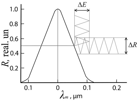 Figure 9 shows the value of the reflection coefficient R on the change in the resonant wavelength. If the laser wavelength λm is adjusted to the middle of the slope of the spectral reflectance curve corresponding to the value of Rmax/2, then the alternating electric field will create a corresponding change in the reflectance (∆R). The use of an almost linear segment dR/dλm makes it possible to determine the values of the field E on a linear scale.