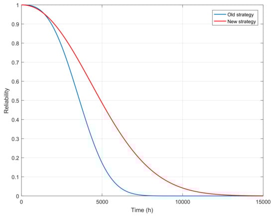 Comparison of the reliability value of coal mills with the (“new strategy”) and without the (“old strategy”) performing remediation actions.