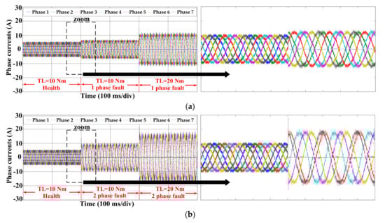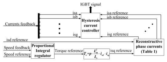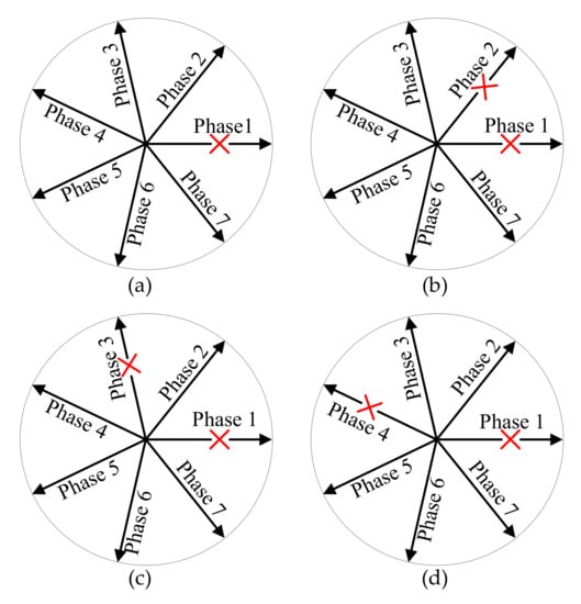 - Fu, J.-R.; Lipo, T.A. Disturbance-free operation of a multiphase current-regulated motor drive with an opened phase. IEEE Trans. Ind. Appl. 1994, 30, 1267–1274. [Google Scholar] [CrossRef]