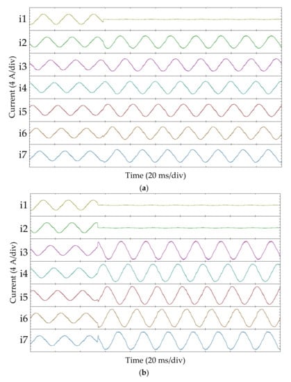 - Duran, M.J.; Gonzalez-Prieto, I.; Rios-Garcia, N.; Barrero, F. A Simple, Fast, and Robust Open-Phase Fault Detection Technique for Six-Phase Induction Motor Drives. IEEE Trans. Power Electron. 2017, 33, 547–557. [Google Scholar] [CrossRef]