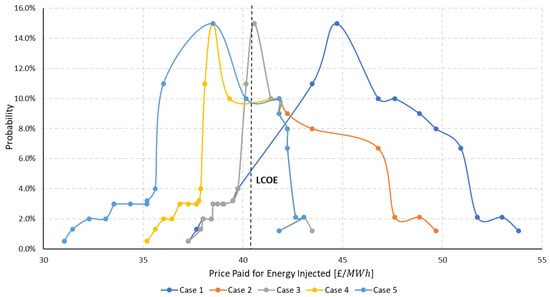 Figure 4), with diverse expected values of the price of the energy injected and taking lower and higher values than LCOE.