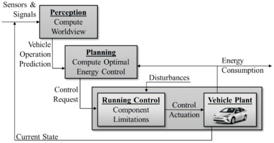 - Asher, Z.D.; Patil, A.A.; Wifvat, V.T.; Frank, A.A.; Samuelsen, S.; Bradley, T.H. Identification and Review of the Research Gaps Preventing a Realization of Optimal Energy Management Strategies in Vehicles. SAE Int. J. Altern. Powertrains 2019, 8. [Google Scholar] [CrossRef]