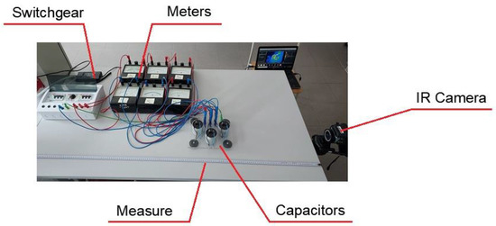 The consumption of inductive reactive power can be compensated by the consumption of capacitive reactive power [8]. It is possible after adding a device whose operation increases the consumption of capacitive reactive power. The capacitor is such a device [9]. The use of capacitors to compensate the consumption of inductive reactive power is a frequently used solution [10]. Reactive power compensation capacitors must be checked regularly. The regular checking of the capacitors makes it possible to detect their capacity decline below the permissible value, which may be caused by the passage of time [11]. Additionally, it is possible to detect a potential failure before it occurs [12]. One of the activities that should be performed while testing the capacitor bank is checking the degree of heating of individual capacitor cells [13].