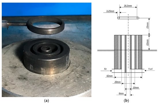 Figure 2) of 26.5 mm in inner diameter and 3.25 mm in thickness was adjusted at 25 mm height from burner exit to generate electric field and polarity of −5 to +5 kV. The high voltage power source was able to supply direct-current voltage from 0 to 5 kV.