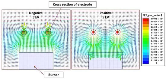 The intensity and direction of the electric field generated by the electrode were demonstrated by using the Ansys Maxwell 2D program (
