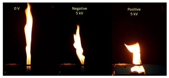 16]. In addition, the ionic wind effect present in the combustion process by application of an electric field improves flame efficiency. Therefore, the electric field effect shows a very promising effect to improve the combustion stability and efficiency of the flame [