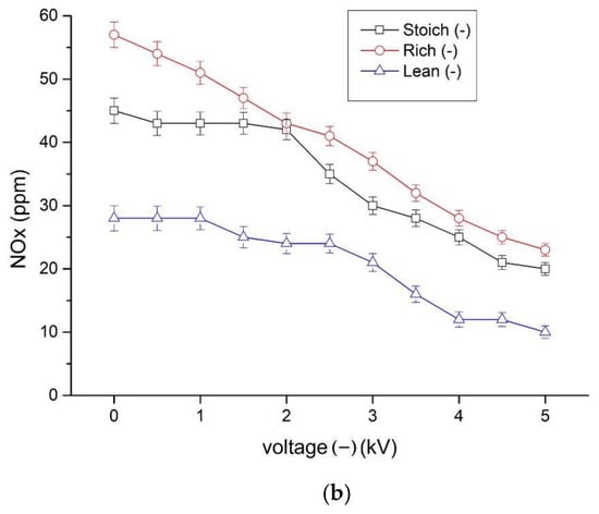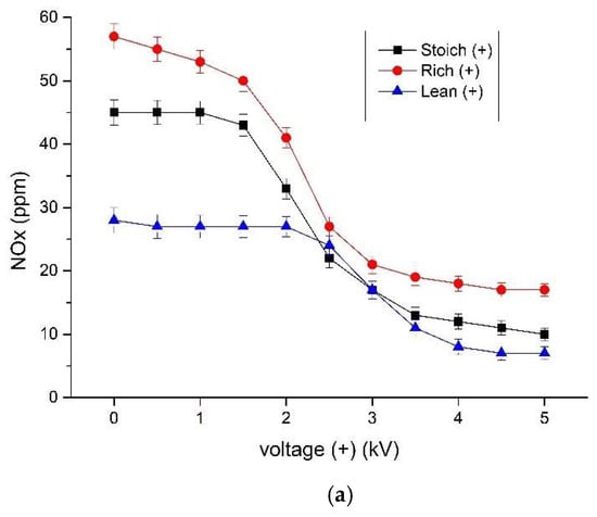 Figure 8a) up to 2 kV at all air-fuel ratios, the amount of NO