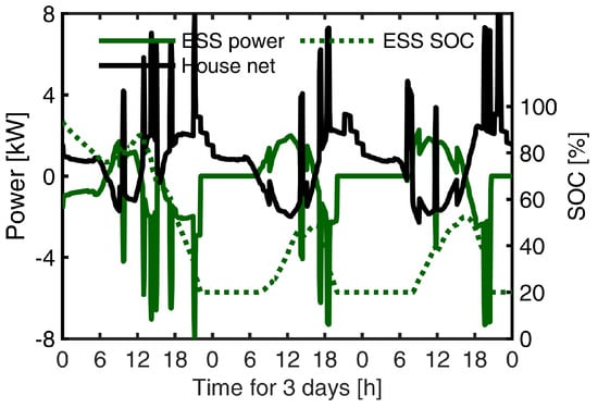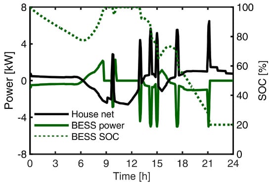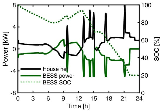 An example of self-sustained operation for a house with an increased BESS rating of 27 kWh. In this case, the self-sustained operation of approximately 22 h was 5 h longer than the reference case.