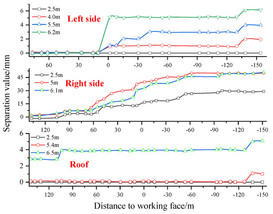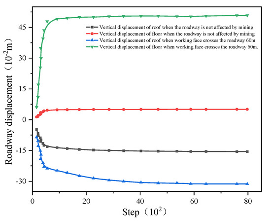 3.1.3. Influence of Position Relationship between Roadway and Overlying Working Face on Surrounding Rock Stability