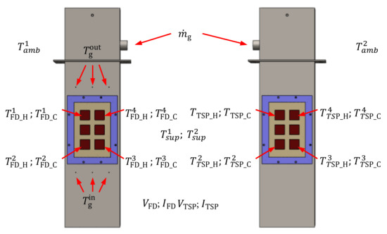 Sensors and probes distribution along the thermoelectric generators.