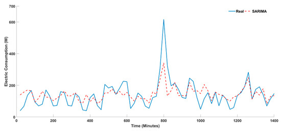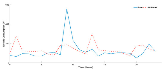 These interpretations can be backed up by the research work presented in [56]. Introducing appliance measurement into the training dataset enhances the forecast performance for LSTM. However, if we consider these measures as exogenous variables in the SARIMAX process, a greater performance improvement can be observed.