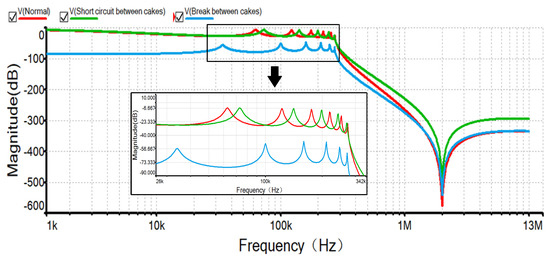 According to the simulation, the influence data of the frequency response of the transformer when the inductance is broken or short-circuit is extracted and processed, as shown in Figure 5.