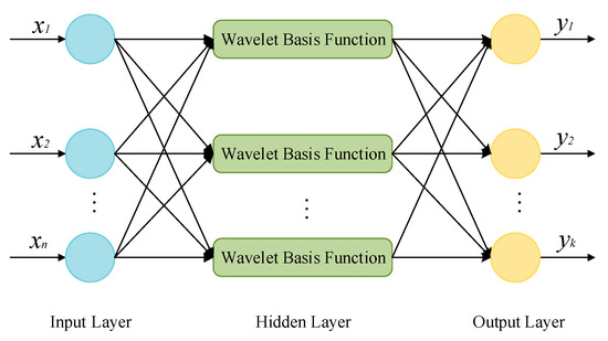 In 1992, Zhang and Albert Benveniste first proposed Wavelet Neural Network (WNN) [49], which is an artificial neural network derived from wavelet transformation based on the BPNN structure [50]. WNN uses the wavelet function to replace the node function of the hidden layer of the conventional neural network, and the corresponding connection weight from the input layer to the hidden layer and the threshold of the hidden layer are replaced by the scale and translation parameters of the wavelet function; that is, the activation function is the located wavelet basis function. WNN’s basic idea and principle is to take the index attribute value of the characteristics of the evaluation object as the input vector of the neural network and the known corresponding evaluation value as the WNN’s output. It can be trained by batch processing through the conjugate gradient method to adaptively adjust the wavelet coefficients and network weights. By learning enough samples to train the network, WNN is like a “black box”, storing expert evaluation experience and some mathematical reasoning mechanisms, and establishing a non-linear mapping relationship from the evaluation index attribute value to the output comprehensive evaluation value. In this way, the trained wavelet neural network can be used to evaluate new evaluation objects. Its network structure is shown in Figure 11.