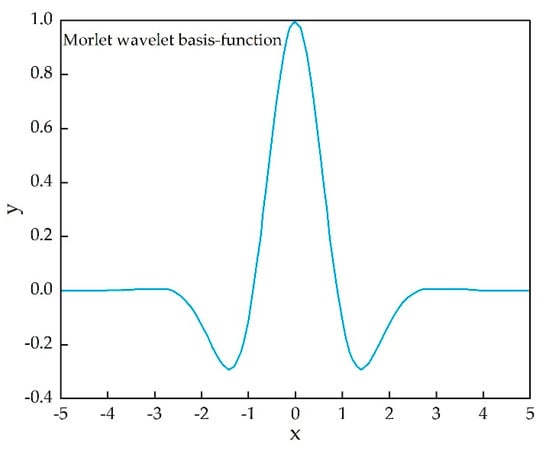 WNN constructed by Morlet wavelets ( is usually 1.75) have been used widely in various fields. The expression of the Morlet wavelet basis function in the above Equation (11) is: