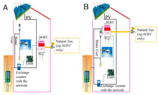 In this scheme the energy sources are represented by the r-SOFC, the PV and the external grid.