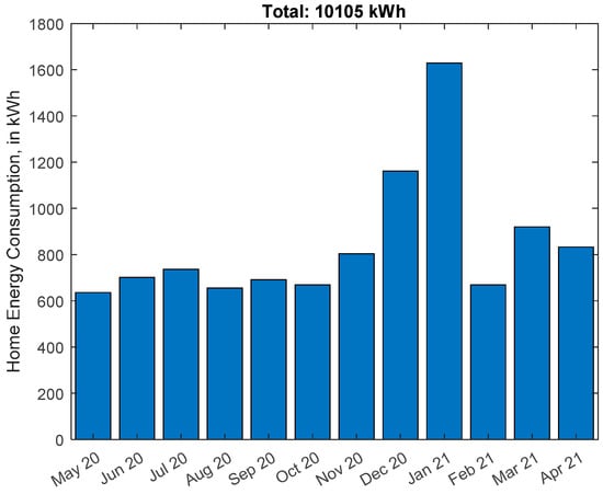 The annual energy consumption is shown in Figure 6. As expected, more energy is consumed in the winter, due to heating requirements. Air conditioning is sometimes used during the summer, but its operation is occasional and is not so relevant in terms of consumption.