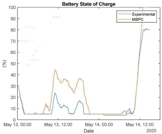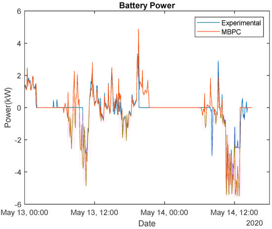 MBPC was applied, considering times steps of 5, 10, and 15 min, and prediction horizons of 12, 24, and 36 steps ahead. There were no significant changes in the cost values, the optima values being achieved for 15 min and 36 steps ahead. For selling, MBPC obtained an average cost of EUR 1.80, corresponding to a reduction of 35% of the experimental cost. In terms of buying, MBPC obtained a cost of EUR 0.15, which is worse than the experimental value (EUR 0.27). In spite of this, a significant reduction in the net cost was obtained, as Jn for the MBPC was 1.65, corresponding to a reduction of 35%