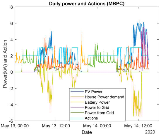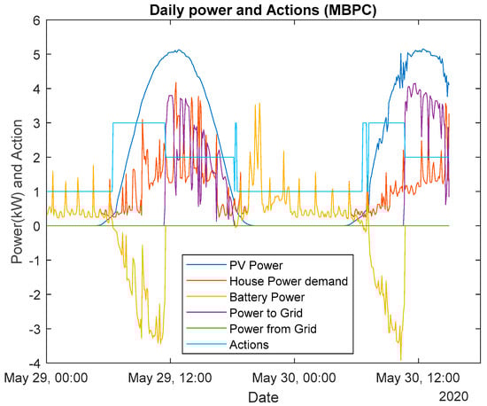 Different power signals, MBPC control (sunny day).