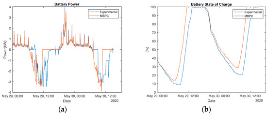 In [34], the potential of MBPC in detached residences’ EMS is assessed. The residence systems being used have HVAC systems, photovoltaics, and battery systems. The model used a successive series of six measurements of 120 h each within the heating season. When focusing on HVAC (heat pump), they obtained an average increase in the coefficient of performance of 22.2% and an average increase of 234.8% in terms of photovoltaic self-consumption. The operational costs for the HVAC were also evaluated, and a reduction of 34.0% was obtained when using the MBPC.