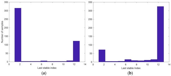 Histogram of the last stable index: (a) sunny day; (b) cloudy day.