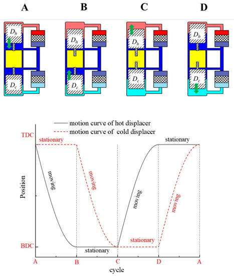 - Luo, B.J.; Zou, P.; Jiang, T.; Gao, Q.; Liu, J. Decoupled duplex Stirling machine: Conceptual design and theoretical analysis. Energy Convers. Manag. 2020, 210, 112704. [Google Scholar] [CrossRef]