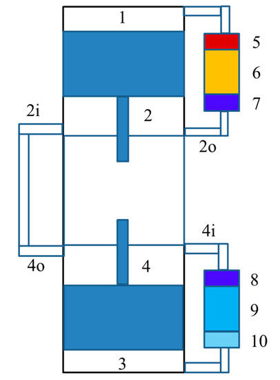 | 7E | volume occupied by engine in cold-warm heat exchanger, which is marked in green in Figure 5c |