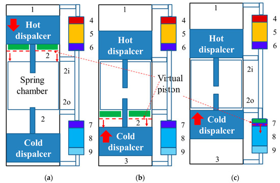 - Chen, H.; Longtin, J.P. Performance analysis of a free-piston Vuilleumier heat pump with dwellbased motion. Appl. Therm. Eng. 2018, 140, 553–563. [Google Scholar] [CrossRef]