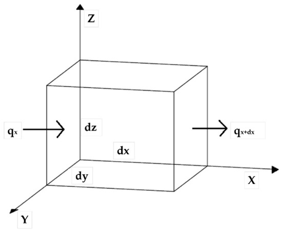 The heat transfer rate associated with the HS is modeled in this section. The first step to model the HS numerically is knowing the temperature profile. Some assumptions should be made to simplify the model and reduce the computational cost. In this regard, due to the small dimensions of the HS, the conduction is assumed to take place only in the longitudinal (x-) direction, even if conduction within the HS is two-dimensional. The dimensions of the used HS are shown in Figure 9. Moreover, the temperature change in the transverse directions (y-, z-) are small. Hence, the thermal conductivity (K [W/m·K]) is assumed constant, and the surface radiation is negligible. The other assumption is related to the convective heat transfer coefficient (h [W/m2·K]) uniform over the surface. Figure 10 shows the energy balance within the HS that can be expressed as: