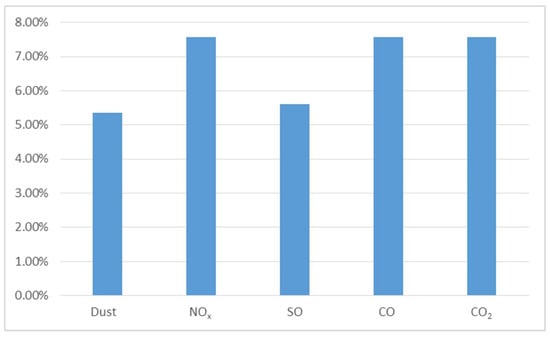 | Type of Pollutants | Dust (Mg) | NOx (Mg) | SO2 (Mg) | CO(Mg) | CO2 (Mg) |
