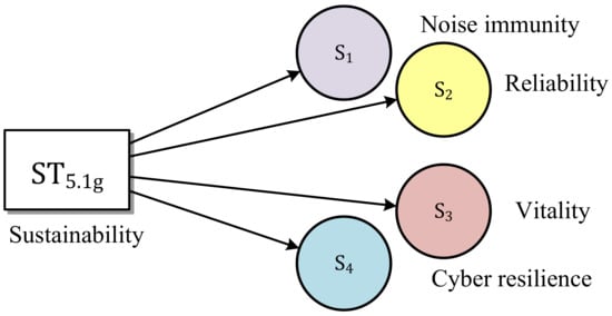 The groups disclose one of the aspects of information security (confidentiality , integrity , and availability of the information), as well as the required parameters of the telecommunications component of the TDTN (intelligence security , sustainability , and the TDTN throughput ) that is to be protected. can be decomposed into four more oriented subgraph chains characterizing “Noise immunity”, “Reliability”, “Vitality”, and “Cyber resilience” of the TDTN (Figure 2).
