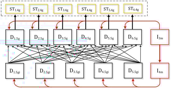 The classifiers of the components of the TDTN threat graph are represented by an undirected flat subgraph . Thus, the formal model of threats (Figure 5) consists of a direct compositional sum () of the graphs (directly the threat) and (classifiers of the components of the graph ), defined by the following expression: