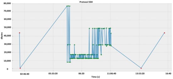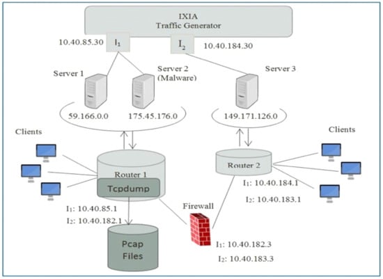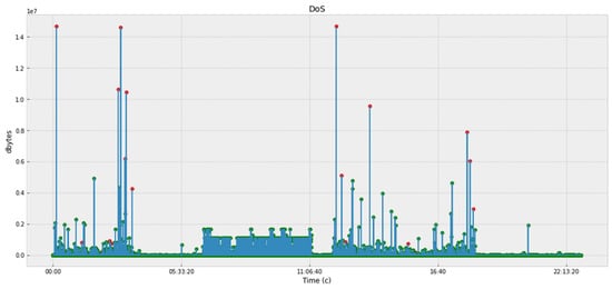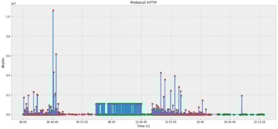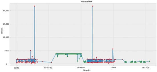 Cyberattacks, such as DDoS, reconnaissance, backdoor, exploits, fuzzers, and “scanning the network and its vulnerabilities”, were taken into account as implemented attacks. The traffic structure, packet header length, flags, checksum, and some others were considered as the main characteristics under study in the dataset.