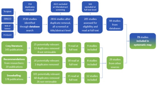- The search for grey literature consisted of two parts [31] and rendered nine publications for inclusion in the map: