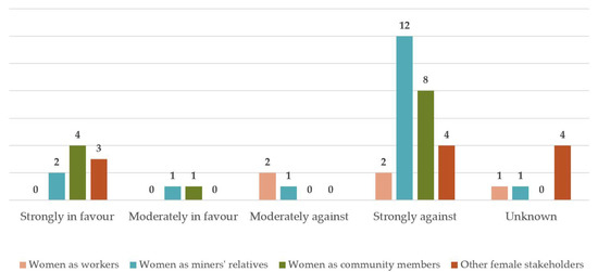 Five studies from three publications covered the agency of women as coal workers. This particularly low number of studies reflects the predominance of male workers in coal mines in industrialised countries (e.g., 96.2% of the workforce in the USA coal industry is male [85] (p. 57)). This group of women were against or strongly against the transition, as it would inevitably entail losing their current jobs. Various studies reported that female miners tended to be dismissed [45] or demoted [59] before their male colleagues, indicating that coal transitions might hit female workers harder or earlier than male workers.