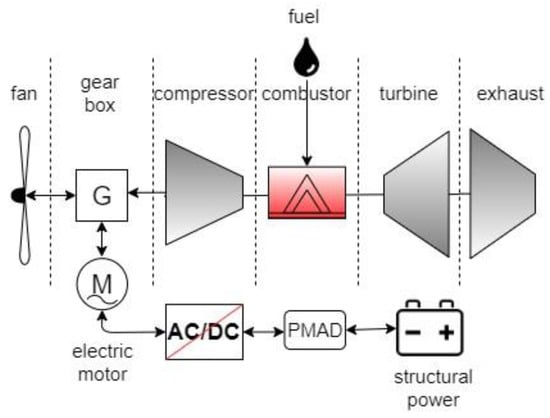 - Ang, A.W.X.; Rao, A.G.; Kanakis, T.; Lammen, W. Performance analysis of an electrically assisted propulsion system for a short-range civil aircraft. Proc. Inst. Mech. Eng. Part G J. Aerosp. Eng. 2019, 233, 1490–1502. [Google Scholar] [CrossRef] [Green Version]