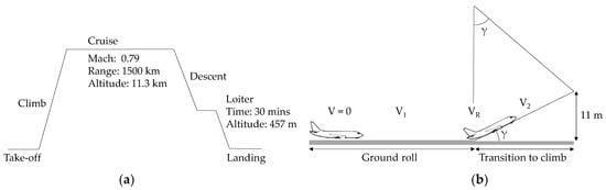 (a) Mission profile and (b) take-off path based on conventional aircraft specifications (adapted from [42]).