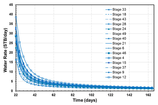 - Clarkson, C.R.; Williams-Kovacs, J.D. Flowback and Early-Time Production Data Analysis. In Hydraulic Fracturing: Fundamentals and Advancements; Miskimins, J., Ed.; Society of Petroleum Engineers: Richardson, TX, USA, 2019; p. 795. ISBN 978-1-61399-719-2. [Google Scholar]