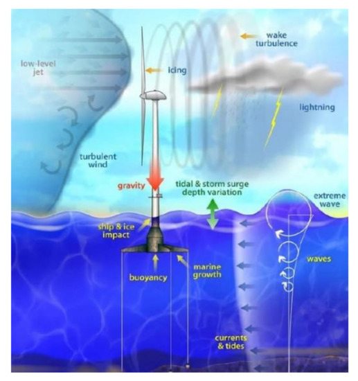 Offshore floating wind turbine loading sources; Reprint with permission [37]; 2007, NREL.