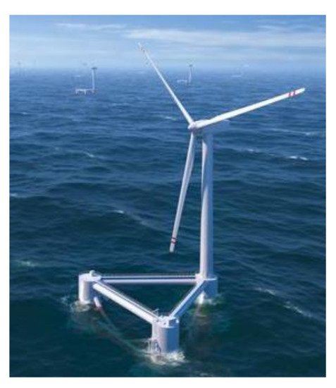 - Shimada, K.; Ohyama, T.; Miyakawa, M.; Ishihara, T.; Phuc, P.V.; Sukegawa, H. A Study on a Semi-Submersible Floating Offshore Wind Energy Conversion System. In Proceedings of the Seventeenth International Offshore and Polar Engineering Conference, Lisbon, Portugal, 1–6 July 2006; Available online: https://www.onepetro.org/conference-paper/ISOPE-I-07-481 (accessed on 3 May 2020).