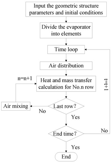 A flow chart describing the implementation of the frosting evaporator model in this paper is shown in Figure 3.