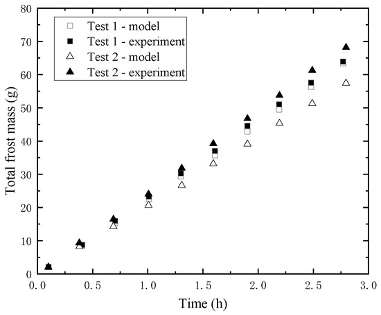 Total frost mass in the model and experiment [21].