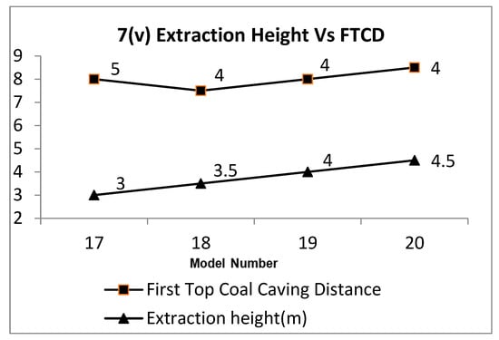 - The effect of the cutting height on TFCD has shown that for an extraction height of 3 m, the TFCD is only 5 m, and when the cutting height is enhanced from 3.5 m, the TFCD increased to 4 m, and there is no improvement in TFCD despite the extraction height increasing from 4 m to 4.5 m, as shown in Figure 7(v). The correlation between the cutting height and TFCD is found to be only 0.6.